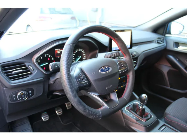 Ford Focus Wagon 1.0 EcoBoost Hybrid ST-Line | Winterpack | NL-auto. Sportieve en zuinige Ford Focus Wagon met krachtige en efficiënte 1.0 EcoBoost Hybrid motor. Afkomstig van eerste eigenaar en volledig dealer onderhouden. Betreft een Nederlandse auto met logische kilometerstand. Bouwjaar: 12-2022. Kilometerstand: 84.981 km. Uitgevoerd met o.a.: Winterpack (stuur- en stoelverwarming). Achteruitrijcamera. Apple CarPlay / Android Auto. Sportieve ST-Line uitvoering met dé kleur van Ford! Comfort, ruimte en moderne technologie in één. Ideaal voor zowel zakelijk als privégebruik. Interesse? Neem snel contact op! 6 versn., Handgeschakeld; Modeljaar: 2022; Voorwielaandrijving; 91 kW; 170 Nm; 3 cilinders; 999cc; Gewicht: 1.366kg; Laadvermogen: 604kg; GVW: 1.970kg; Max. trekgewicht: 1.000kg; LxBxH: 469x184x155cm; Wielbasis: 270cm; 52l tank; 0-100 km/h: 10,4s; Topsnelheid: 200km/u; Interieur: zwart, Stof; 5 zitplaatsen; 5,2 l/100km; 124 g/km CO₂; Energielabel A; Euro 6; Aantal eigenaren: 4;...