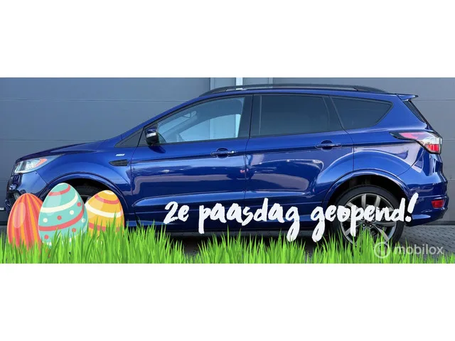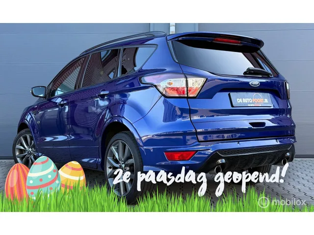 Ford Kuga 1.5 EcoBoost ST Line 182PK Navi+/19"/Trekhaak/Winterpakket. Merk: Ford; Model: Kuga; Tellerstand: 102563 KM; Carrosserievorm: SUV; Aantal deuren: 5; Brandstofsoort: Benzine; Bouwjaar: 2017; Transmissie: Automaat; Kleur: blauw Metallic; Motorinhoud: 1498 cc; Aantal cilinders: 4; Vermogen: 134 kW / 183pk; Ledig gewicht: 1586 kg; Max. trekgewicht: 1850 kg; Aantal zitplaatsen: 5; Verbruik: 7.4 l/100 km; BTW/Marge: Marge, de BTW is niet aftrekbaar; Onderhoudshistorie aanwezig: Ja. Pakket: Audio pakket. Achteruitrijcamera; Audio installatie premium; DAB. Pakket: Optie pakket. Elektrisch bedienbare achterklep met sensorsturing; Keyless entry. Comfort. Boordcomputer; Cruise control; Regensensor. Exterieur. Buitenspiegels elektrisch inklapbaar; Buitenspiegels elektrisch verstel- en verwarmbaar; Centrale vergrendeling met afstandsbediening; Dakrails; Dimlichten automatisch; LED dagrijverlichting; Lichtmetalen velgen 18"; Lichtmetalen velgen 19"; Metaalkleur; Mistlampen voor; Parkeer...