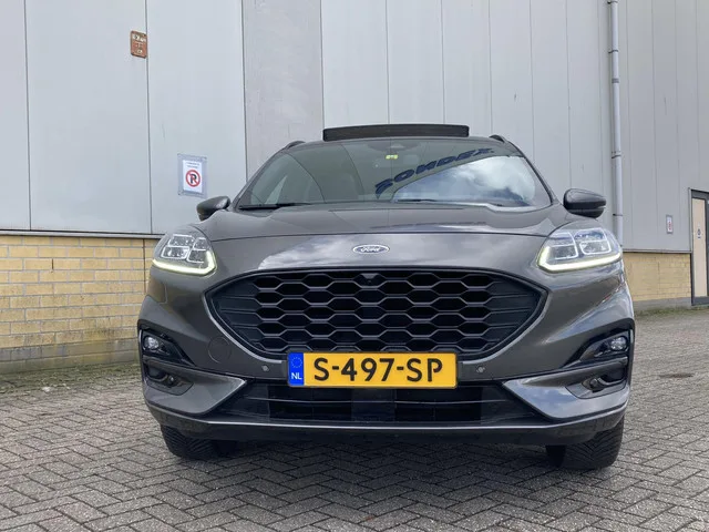 19 inch lichtmetalen velgen - 15-spaaks - hoogglans Ebony Black, Panoramadak, elektrisch te openen (incl. opbergvak zonnebril in plafondconsole), Premium Metaallak: Magnetic, Achterbumper inclusief diffuser, Achterspoiler, Automatisch inschakelende dimlichten, Chrome afwerking bovenzijde portierramen, Dakreling Zwart, Dubbele uitlaat achter - Sportief Design, Elektrisch verstelbare, verwarmbare en inklapbare buitenspiegels met instapverlichting, FordKeyless Entry op de voorportieren (incl. motion sensor in de sleutel), Geluidswerende zijramen voor, Handsfree elektrisch bedienbare achterklep, koplampreiniging, LED achterlichten, LED dagrijverlichting, LED koplampen voor dimlicht en grootlicht, LED mistlampen voor - uniek design, Privacy glass, Regensensor, Sportieve unieke ST-Line zijskirts