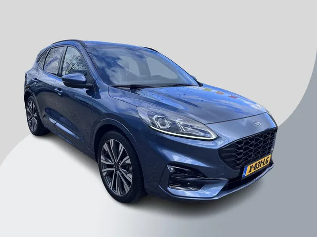 Robuuste wielkasten, grote wielen en een opvallende taillelijn. Deze Ford Kuga heeft de uitstraling van een suv en de binnenruimte van een limousine. Deze hybride auto beschikt over een verbrandingsmotor én een elektromotor. Daardoor rijdt de auto zeer comfortabel en is tegelijk zuinig in het verbruik. Hoogstaande comfortfuncties zoals stoelverwarming, verwarmbare achterbank en een verwarmbaar stuur maken deze auto tot een uitzonderlijke keuze. De sportstoelen houden u en uw bijrijder goed op z'n plek tijdens het accelereren en bij het nemen van scherpe bochten. De elektrische achterklep opent met een druk op de knop, zodat u gemakkelijk toegang heeft tot de bagageruimte. Verder is de Ford uitgerust met: 19 inch lichtmetalen velgen, LED koplampen, sportonderstel, geluidsisolerende ramen, dakspoiler en in delen neerklapbare achterbank. Stel de interface voor uw cockpit naar wens in met het digitale dashboard van deze auto. Waar u zelf ook bent, u staat altijd in contact met de auto...