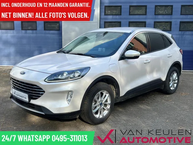 Net binnen! Alle foto's volgen zodra de auto gepoetst is. Deze Kuga is wel al te bezichtigen. Deze in bijna nieuwstaat verkerende Ford Kuga PHEV is aantoonbaar afkomstig van de eerste eigenaar en volledig dealer onderhouden. Ford Kuga 2.5 PHEV TITANIUM X l Zeer luxe l 65 km elektrisch. Merk: Ford; Model: Kuga; APK tot: 28-09-2027; Tellerstand: 77691 KM; Carrosserievorm: SUV; Aantal deuren: 5; Brandstofsoort: Hybride (Elektrisch/Benzine); Accucapaciteit: 14 kWh; Bouwjaar: 2022; Transmissie: Automaat; Kleur: wit Parelmoer; Kleurnaam: White Platinum Metallic; Bekleding: Leder/Stof; Kleur interieur: zwart; Motorinhoud: 2488 cc; Aantal cilinders: 4; Vermogen: 165 kW / 225pk; Ledig gewicht: 1744 kg; Max. trekgewicht: 1500 kg; Aantal zitplaatsen: 5; Verbruik: 1.4 l/100 km; BTW/Marge: BTW aftrekbaar, de prijs is inclusief BTW; Aantal sleutels: 2; Onderhoudshistorie aanwezig: Dealer onderhouden. Pakket: Winter pack. Achterbank verwarmd; Stuur verwarmd; Verwarmde voorruit; Voorstoelen...