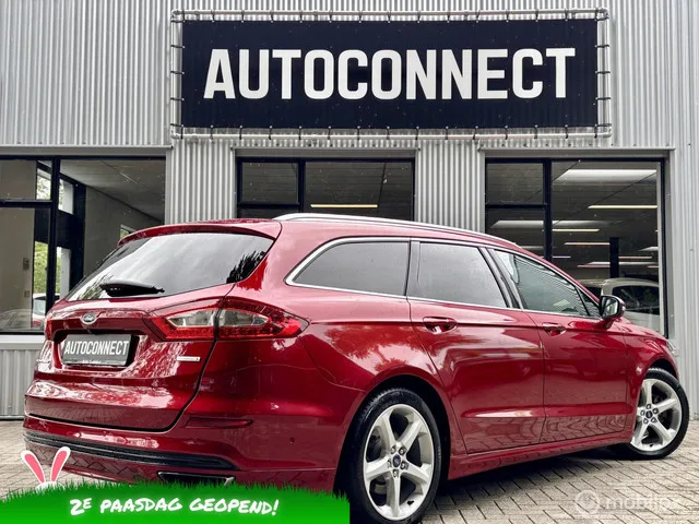 Ford Mondeo Wagon 2.0 Titanium. 240 PK, NAVI, CRUISE, CAMERA, STOELVERWARMING. Merk: Ford; Model: Mondeo Wagon; Tellerstand: 139972 KM; Carrosserievorm: Station; Aantal deuren: 5; Brandstofsoort: Benzine; Bouwjaar: 2015; Transmissie: Automaat; Kleur: rood Metallic; Bekleding: Leder/Alcantara; Motorinhoud: 1999 cc; Aantal cilinders: 4; Vermogen: 176 kW / 240pk; Ledig gewicht: 1484 kg; Aantal zitplaatsen: 5; Verbruik: 7.5 l/100 km; BTW/Marge: Marge, de BTW is niet aftrekbaar; Aantal sleutels: 2; Onderhoudshistorie aanwezig: Dealer onderhouden. Pakket: Audio pakket. Bluetooth; DAB; Parkeersensor voor en achter. Pakket: Business Pack. Bluetooth; DAB; Navigatiesysteem; Parkeer assistent. Pakket: Comfort Seat Pack. Elektrisch verstelb. bestuurdersstoel met geheugen; Elektrisch verstelbare passagiersstoel; Elektrisch verstelbare stoel(en) met geheugen; Kunstlederen/microvezel bekleding; Voorstoelen verwarmd. Pakket: Connectivity pakket. Achteruitrijcamera; Audio installatie premium...
