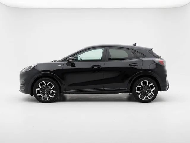 Ford Puma 1.0 EcoBoost 125pk Hybrid ST-Line X | Half leder | Virtual cockpit | Trekhaak. Kenteken: J-819-TH; Merk: Ford; Model: Puma; APK tot: 29-11-2026; Tellerstand: 173598 KM; Carrosserievorm: SUV; Aantal deuren: 5; Brandstofsoort: Benzine; Bouwjaar: 2020; Transmissie: Handgeschakeld 6-bak; Kleur: zwart Metallic; Kleurnaam: Zwart metallic; Bekleding: Leder/Stof; Kleur interieur: zwart; Motorinhoud: 999 cc; Aantal cilinders: 3; Motorcode: B7JB; Vermogen: 92 kW / 125pk; Ledig gewicht: 1180 kg; Max. trekgewicht: 1100 kg; Aantal zitplaatsen: 5; Verbruik: 4.3 l/100 km; BTW/Marge: Marge, de BTW is niet aftrekbaar; Lengte: 421 cm; Breedte: 181 cm; Aantal sleutels: 2; Onderhoudshistorie aanwezig: Ja; Motorrijtuigenbelasting: € 172 - 188 per kwartaal; Emissieklasse: Euro 6. Comfort. Boordcomputer; Cruise control; Regensensor. Exterieur. Achterspoiler; Buitenspiegels elektrisch inklapbaar; Buitenspiegels elektrisch verstel- en verwarmbaar; Buitenspiegels in carrosseriekleur; Buitenspiegels...
