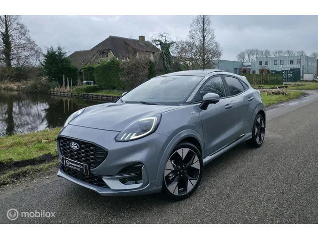 Ford Puma 1.0 EcoBoost Hybrid ST / Pano / B&O / 360 Camera. Kenteken: JVH-08-F; Merk: Ford; Model: Puma; APK tot: 03-04-2029; Tellerstand: 6008 KM; Carrosserievorm: SUV; Aantal deuren: 5; Brandstofsoort: Benzine; Bouwjaar: 2025; Transmissie: Handgeschakeld; Kleur: zilver; Bekleding: Leder/Stof; Kleur interieur: zwart; Motorinhoud: 999 cc; Aantal cilinders: 3; Vermogen: 125 kW / 170pk; Ledig gewicht: 1234 kg; Aantal zitplaatsen: 5; Verbruik: 6 l/100 km; BTW/Marge: BTW aftrekbaar, de prijs is inclusief BTW; Onderhoudshistorie aanwezig: Ja; Motorrijtuigenbelasting: € 172 - 188 per kwartaal. Comfort. Boordcomputer; Cruise control; Regensensor. Exterieur. Adaptief demping systeem; Buitenspiegels elektrisch inklapbaar; Buitenspiegels elektrisch verstel- en verwarmbaar; Buitenspiegels in carrosseriekleur; Buitenspiegels met verlichting; Bumpers in carrosseriekleur; Centrale vergrendeling met afstandsbediening; Dimlichten automatisch; Elektrisch bedienbare achterklep; Extra getint glas...