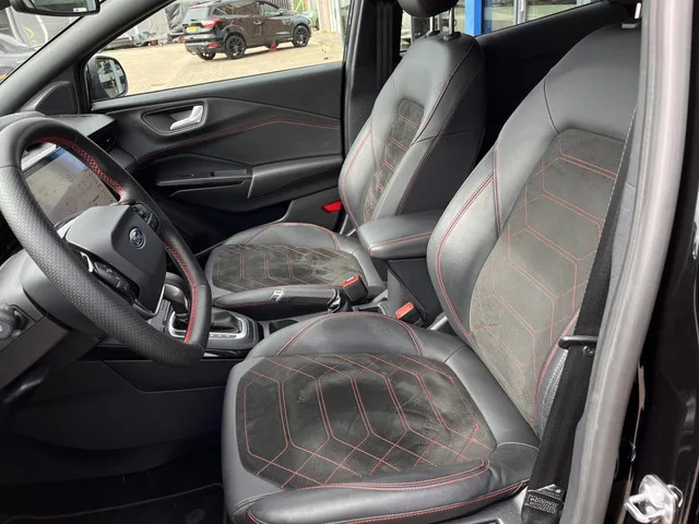 Ford Puma 1.0 EcoBoost Hybrid ST-Line X 125PK Automaat Winterpack Camera Cruise Navi B&O Climate Keyless Elek. Achterklep Full-LED Privacy Glass *Sportief*. Kenteken: KDX-82-H; Merk: Ford; Model: Puma; APK tot: 25-02-2029; Tellerstand: 28423 KM; Carrosserievorm: SUV; Aantal deuren: 5; Brandstofsoort: Hybride (Elektrisch/Benzine); Bouwjaar: 2025; Transmissie: Automaat; Kleur: zwart; Kleurnaam: Agate Black Metallic; Bekleding: Leder/Alcantara; Kleur interieur: zwart; Motorinhoud: 999 cc; Aantal cilinders: 3; Vermogen: 92 kW / 125pk; Ledig gewicht: 1268 kg; Max. trekgewicht: 900 kg; Aantal zitplaatsen: 5; Verbruik: 5.7 l/100 km; BTW/Marge: BTW aftrekbaar, de prijs is inclusief BTW; Aantal sleutels: 2; Onderhoudshistorie aanwezig: Dealer onderhouden; Motorrijtuigenbelasting: € 199 - 217 per kwartaal; Fabrieksgarantie tot: 25-02-2027. Pakket: Winter pack. Stuur verwarmd; Verwarmde voorruit; Voorstoelen verwarmd. Comfort. Boordcomputer; Cruise control; Regensensor. Exterieur. 17 inch...