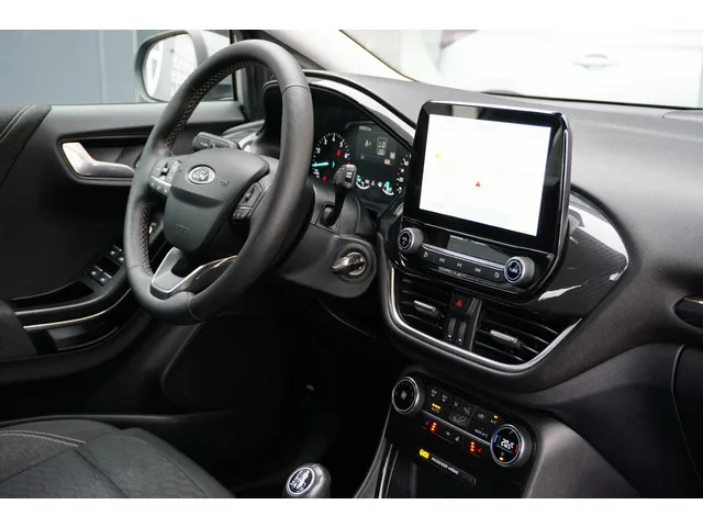 Uiterst complete Ford Puma! Deze Titanium X uitvoering beschikt over vele luxe, denk aan: Stoelverwarming / Stuurwielverwarming / Voorruitverwarming /  Massagefunctie voorstoelen / Parkeersensoren / Apple CarPlay / Android Auto / Full led verlichting / Climate control / Bluetooth / Cruise control / Buitenspiegels elektrisch verstel-en inklapbaar / Etc. 6 versn., Handgeschakeld; Modeljaar: 2020; Voorwielaandrijving; 92 kW; 210 Nm; 3 cilinders; 999cc; Gewicht: 1.208kg; Laadvermogen: 552kg; GVW: 1.760kg; Max. trekgewicht: 1.100kg; Breedte: 181cm; Wielbasis: 259cm; 42l tank; 0-100 km/h: 9,8s; Topsnelheid: 191km/u; Stof; 5 zitplaatsen; 4,3 l/100km; 140 g/km CO₂; Energielabel A; Euro 6d-TEMP; APK: tot jun. 2026; Wegenbelasting: € 172-€ 188p/kwrt; vanaf € 287 p/m (informeer naar de mogelijkheden en voorwaarden); Beschikbare afleverpakketten: Servicepakket 1 (€ 495); Servicepakket 2 (€ 695); Servicepakket 3 (€ 995); S-987-XR