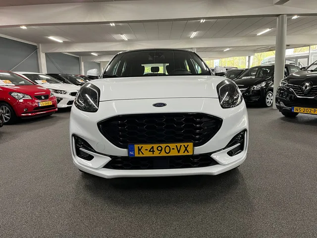 Mooie Ford Puma, NL-auto met NAP, BTW auto, Eerste eigenaar, Navigatie, Apple / Android Carplay, Licht metalen velgen 17 inch, Panoramadak, Trekhaak, Automaat. Voorwielaandrijving; Bandenmaat: 215/55 R17; 92 kW; 3 cilinders; 999cc; Gewicht: 1.226kg; Laadvermogen: 589kg; GVW: 1.815kg; Max. trekgewicht: 900kg; LxBxH: 433x181x156cm; Wielbasis: 259cm; 0-100 km/h: 10,2s; Topsnelheid: 187km/u; Interieur: zwart, Stof; 5 zitplaatsen; 4,9 l/100km; 5,8 l/100km; 4,3 l/100km; 110 g/km CO₂; Energielabel C; Euro 6; Dealer onderhouden (onderhoudsboekjes aanwezig); APK bij aflevering; 2 sleutels (2 handzenders); Wegenbelasting: € 172-€ 188p/kwrt; vanaf € 307 p/m (informeer naar de mogelijkheden en voorwaarden); Optioneel afleverpakket: Bovag 12 mnd (€ 595); K-490-VX