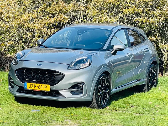Merk & Model, uitvoering. Ford Puma, 1.0 EcoBoost Hybrid ST-Line NAVIGATIE/CAMERA, CRUISE, ECC AIRCO. Bouwjaar. 2024. Kilometerstand. 16495 km. Brandstof. Hybride Elektrisch/Benzine. Transmissie. Automaat 6 versnellingen. Vermogen. 125 pk. APK tot. 29 maart 2028. Basis. Merk & Model. Ford Puma. Uitvoering. 1.0 EcoBoost Hybrid ST-Line NAVIGATIE/CAMERA, CRUISE, ECC AIRCO. Bouwjaar. 2024. Kilometerstand. 16495 km. Carrosserie. SUV of Terreinwagen. Kenteken. JZP-61-P. Kleur. Zilver of Grijs. Bekleding. Alcantara. Interieur. Zwart. Aantal deuren. 5. Aantal stoelen. 5. Technisch. Transmissie. Automaat 6 versnellingen. Motorinhoud. 1.0 liter. Aantal cilinders. 3. Vermogen. 125 pk. Topsnelheid. 190 km/h. Turbo. Ja. Acceleratie 0-100 km/h. 9.80 sec. Aandrijving. Voorwiel. Remmen voor. Schijfrem. Remmen achter. Schijfrem. Conditie. Gebruikt. APK tot. 29 maart 2028. Opties. ABS. Achteruitrijcamera. Airbags. Airconditioning. Alarm. Bluetooth. Boordcomputer. Centrale vergrendeling. Climate...