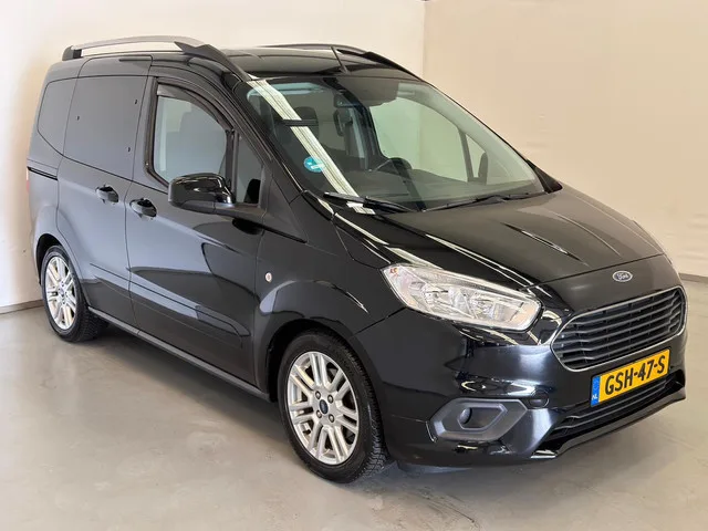 Ford Tourneo Courier 1.0 Titanium. Meer informatie: Transmissie: 6 versnellingen, Handgeschakeld; Voorwielaandrijving; Vermogen: 74 kW (100 PK); Aantal cilinders: 3; Motorinhoud: 998 cc; Ledig gewicht: 1.224 kg; Laadvermogen: 561 kg; GVW: 1.785 kg; Max. trekgewicht: 900 kg (ongeremd 660 kg); Wielbasis: 249 cm; Acceleratie (0-100): 12,3 s; Topsnelheid: 173 km/u; Interieur: Antraciet, Stof; 5 zitplaatsen; Gemiddeld brandstofverbruik: 5,2 l/100km (1 op 19,2); Brandstofverbruik in de stad: 6,2 l/100km (1 op 16,1); Brandstofverbruik op de snelweg: 4,7 l/100km (1 op 21,3); CO₂-uitstoot: 131 g/km; Energielabel: C; Emissieklasse: Euro 6; APK gekeurd tot nov. 2027; 1 sleutel (1 handzender); Motorrijtuigenbelasting: € 172 - € 188 per kwartaal; vanaf € 206 p/m (financial lease, 72 maanden); informeer naar de mogelijkheden en voorwaarden; Referentienummer: GSH-47-S