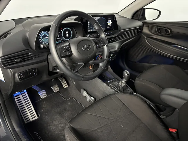 Alle technologie in de Hyundai Bayon is er op gericht om jouw rit veilig en gemakkelijk te laten verlopen. In deze auto vind je een benzinemotor en een handgeschakelde zesversnellingsbak. Tot de uitrusting van deze Hyundai behoren ook 16 inch lichtmetalen velgen, LED-dagrijverlichting en in delen neerklapbare achterbank. Het systeem controleert alle belangrijke functies en geeft die perfect weer via het digitale dashboard. De achteruitrijcamera vergemakkelijkt achteruit inparkeren. Je ziet duidelijk wat er achter de auto gebeurt. Spraakbediening verhoogt de veiligheid en het gebruiksgemak. De auto luistert naar jouw instructies en volgt ze op. Pech of storing, altijd vervelend. Maar met Connected Services weet je direct wat eraan scheelt. En dus ook wat er moet gebeuren. De kortste weg, de zuinigste weg, de snelste weg... elke weg is te vinden met het full map navigatiesysteem. Deze Hyundai is voorzien van draadloos opladen, DAB ontvangst, cruise control, airconditioning,...
