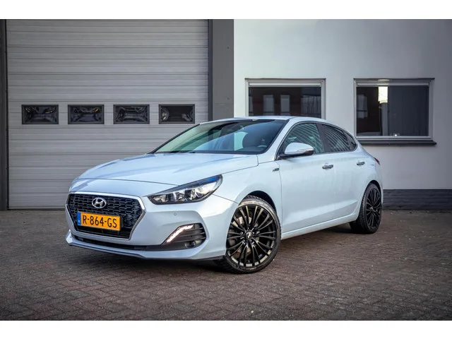 Hyundai i30 Fastback 1.4 T-GDI Premium|Keyless|Half-Leder|Trekhaak. Kenteken: R-864-GS; Merk: Hyundai; Model: i30; APK tot: 22-02-2027; Tellerstand: 163840 KM; Carrosserievorm: Hatchback; Aantal deuren: 5; Brandstofsoort: Benzine; Bouwjaar: 2018; Transmissie: Handgeschakeld; Kleur: grijs; Motorinhoud: 1353 cc; Aantal cilinders: 4; Motorcode: G4LD; Vermogen: 103 kW / 140pk; Ledig gewicht: 1230 kg; Max. trekgewicht: 1400 kg; Aantal zitplaatsen: 5; Verbruik: 5.5 l/100 km; BTW/Marge: Marge, de BTW is niet aftrekbaar; Lengte: 446 cm; Breedte: 180 cm; Hoogte: 1425 cm; Motorrijtuigenbelasting: € 172 - 188 per kwartaal; Emissieklasse: Euro 6. Comfort. Boordcomputer; Cruise control; Regensensor. Exterieur. Buitenspiegels elektrisch inklapbaar; Buitenspiegels elektrisch verstel- en verwarmbaar; Buitenspiegels met verlichting; Centrale vergrendeling met afstandsbediening; Chroom delen exterieur; Dimlichten automatisch; Extra getint glas achter; Keyless entry; Koplampen adaptief; LED...