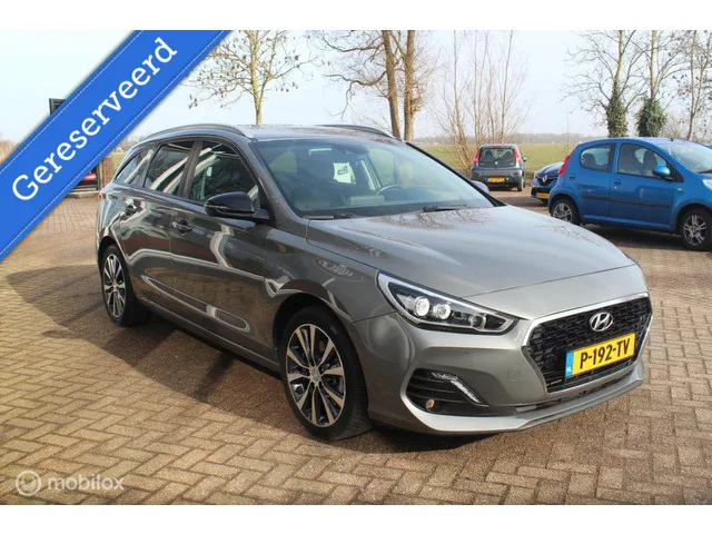 Top uitvoering met: Sport stoelen Carplay Camera Lane-Assist Led 17Inch. Clima Cruise Navi PDC Keyless Stoel+stuurverwarming Led Etc. Hyundai i30 Wagon 1.4 T-GDI 140PK Carplay/Winterpakket/Sportstoelen. Kenteken: P-192-TV; Merk: Hyundai; Model: i30 Wagon; APK tot: 17-04-2026; Tellerstand: 94526 KM; Carrosserievorm: Station; Aantal deuren: 5; Brandstofsoort: Benzine; Bouwjaar: 2019; Transmissie: Automaat; Kleur: grijs; Motorinhoud: 1353 cc; Aantal cilinders: 4; Motorcode: G4LD; Vermogen: 103 kW / 140pk; Ledig gewicht: 1269 kg; Max. trekgewicht: 1410 kg; Aantal zitplaatsen: 5; Verbruik: 5.4 l/100 km; BTW/Marge: Marge, de BTW is niet aftrekbaar; Lengte: 459 cm; Breedte: 180 cm; Motorrijtuigenbelasting: € 199 - 217 per kwartaal; Emissieklasse: Euro 6. Comfort. Boordcomputer; Cruise control; Regensensor. Exterieur. 17 Inch lichtmetalen velgen; Achterruitwisser; Buitenspiegel rechts; Buitenspiegels elektrisch inklapbaar; Buitenspiegels elektrisch verstelbaar; Buitenspiegels in...