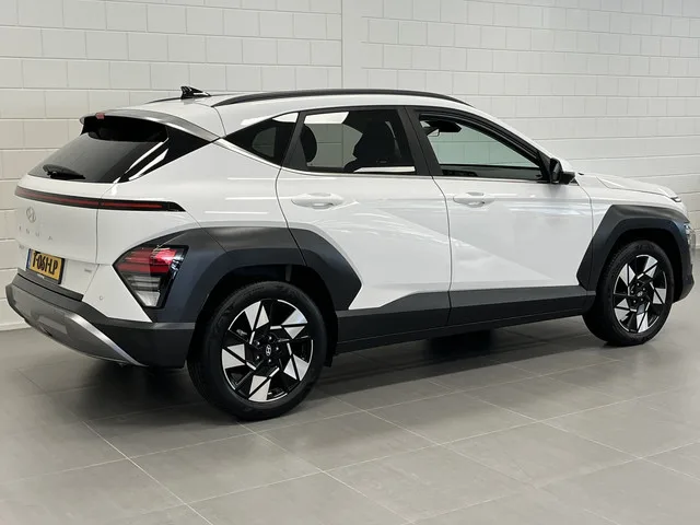 Deze fraaie Hyundai Kona is nog nat achter de oren, zo nieuw. Maar de prijs is gebruikt. Deze auto uit 2023 heeft nauwelijks gereden, met een tellerstand van slechts 19164 kilometer. Een benzinemotor en een automatische transmissie zorgen dat jij met deze SUV prima vooruitkomt. De leren bekleding maakt het interieur helemaal af! Een weldaad voor uw rug en die van uw bijrijder: deze Hyundai Kona heeft verwarmbare voorstoelen met massagefunctie. De bagageruimte is toegankelijk via een comfortverhogende elektrische achterklep. Waarom zou je alleen voorin behaaglijk mogen zitten? Daarom is er óók een verwarmde achterbank. Ook 18 inch lichtmetalen velgen, Full LED koplampen, geluidsisolerende ramen, in delen neerklapbare achterbank, LED-achterlichten en verstelbare lendensteunen zijn aan boord. Met het digitale dashboard heb je essentiële info in beeld. Altijd, overal. Met de 360 graden camera op deze auto wordt het rijden een heel stuk veiliger, dankzij het optimale zicht dat het biedt....