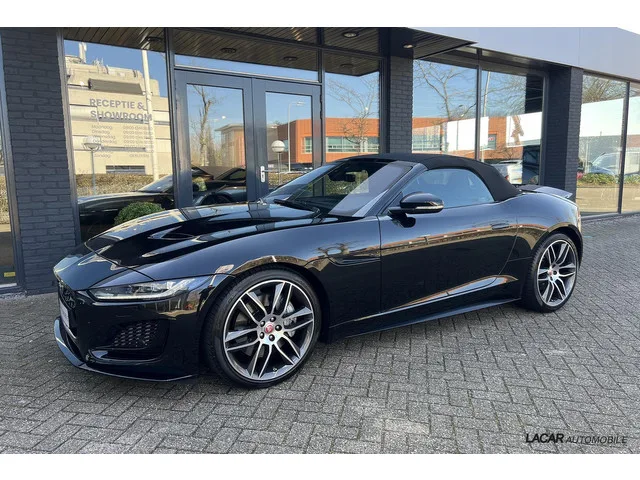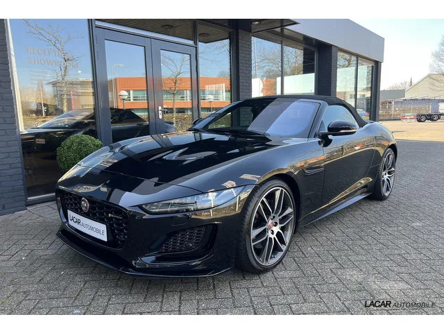 Jaguar F-Type R-Dynamic Cabriolet | 300 PK | Origineel Dealergeleverd | Topstaat. Jaguar F-type P300 RWD First Edition. Kenteken: HRV-09-L; Merk: Jaguar; Model: F-type; APK tot: 03-06-2027; Tellerstand: 9722 KM; Carrosserievorm: Cabrio; Aantal deuren: 2; Brandstofsoort: Benzine; Bouwjaar: 2021; Transmissie: Automaat; Kleur: zwart; Kleurnaam: Santorini Black; Bekleding: Leder; Kleur interieur: zwart; Motorinhoud: 1997 cc; Aantal cilinders: 4; Motorcode: PT204; Vermogen: 221 kW / 301pk; Ledig gewicht: 1608 kg; Aantal zitplaatsen: 2; Verbruik: 8.1 l/100 km; BTW/Marge: Marge, de BTW is niet aftrekbaar; Lengte: 447 cm; Breedte: 192 cm; Hoogte: 1308 cm; Onderhoudshistorie aanwezig: Dealer onderhouden; Motorrijtuigenbelasting: € 280 - 306 per kwartaal; Emissieklasse: Euro 6. Comfort. Cruise control; Regensensor. Exterieur. Achterspoiler; Aluminium delen exterieur; Buitenspiegel(s) automatisch dimmend; Buitenspiegels elektr. met geheugen; Buitenspiegels elektrisch inklapbaar; Buitenspiegels...