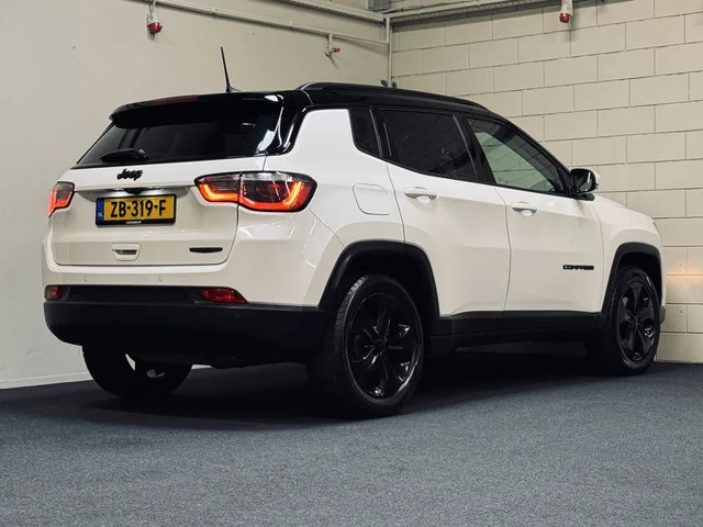 Hele leuke Jeep Compass Night Eagle. Afkomstig van de eerste eigenaar, origineel Nederlands geleverd en volledig aantoonbaar onderhouden. Optionele afleverpakketen: AutoStock Plus: € 495,- incl. 6 maanden uitgebreide garantie. AutoStock Premium: € 895,- incl. 6 maanden uitgebreide garantie, nieuwe APK en onderhoud. AutoStock Premium+: € 1.295,- incl. 12 maanden uitgebreide garantie, nieuwe APK en onderhoud. AutoStock Zorgeloos: € 1.995,- incl. 24 maanden uitgebreide garantie, nieuwe APK en onderhoud. Glascoating: vanaf € 995,-. Trekhaak, vast: vanaf € 800,-. Trekhaak, afneembaar: vanaf € 950,-. Privacyglas: vanaf € 350,-. 6 versn., Handgeschakeld; Modeljaar: 2018; Voorwielaandrijving; 104 kW; 230 Nm; 4 cilinders; 1.368cc; Gewicht: 1.415kg; Laadvermogen: 501kg; GVW: 1.916kg; Max. trekgewicht: 1.000kg; LxBxH: 439x182x163cm; Wielbasis: 264cm; 60l tank; 0-100 km/h: 9,8s; Topsnelheid: 195km/u; Interieurkleur: zwart; 5 zitplaatsen; 6,2 l/100km; 7,8 l/100km; 5,2 l/100km; 143 g/km CO₂;...