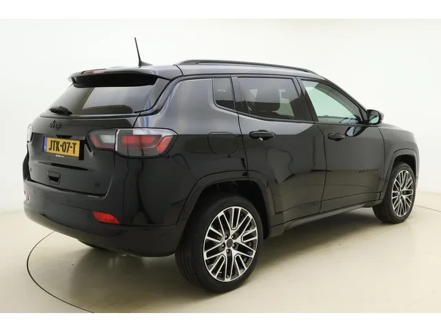 Betrouwbaar in kwaliteit, een topper in rijprestaties en qua conditie in blakende vorm. Deze Jeep Compass staat voor u klaar! Deze Jeep Compass heeft in feite twee motoren: een voor benzine en een elektronische. Deze hybride oplossing biedt het beste van beide! Hoge kwaliteit is ook binnenin aanwezig. Kijkt u maar naar de leren bekleding! Bij de uitrusting van deze auto horen onder meer geventileerde voorstoelen, 19 inch lichtmetalen velgen, Full LED koplampen, trailer assistent, extra getint glas en in delen neerklapbare achterbank. Omdat goed geïnformeerd rijden tegenwoordig om veel meer draait dan alleen snelheid en brandstofpeil, laat het digitale dashboard alle functies zien die u nodig heeft. Afstand schatten bij het achteruitrijden? Niet nodig. U weet het precies, dankzij de achteruitrijcamera. Als u de adaptive cruise control inschakelt, regelt de auto zelf de snelheid en de afstand tot de auto voor u. Met Connected Services wordt iedere rit nóg veiliger. Natuurlijk is er...