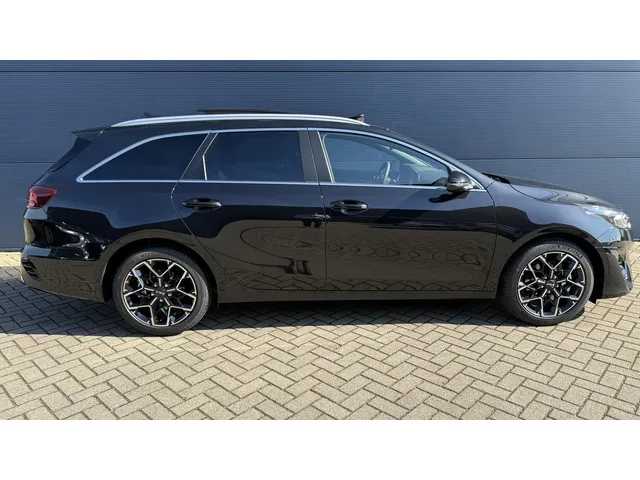 6 airbags (voor-, zij- en gordijn airbags), 10,25'' full map navigatiesysteem met TomTom Live Services en UVO Connect, 12 Volt aansluiting in bagageruimte, 12 Volt aansluiting voor, 17'' lichtmetalen ''GT-Line'' velgen, ABS, ESC, HAC, TPMS, Actieve rijbaan assistentie (LKAS), Aluminium instaplijsten, Aluminium pedalen, Automatisch dimmende binnenspiegel, Autonome noodremassistentie (AEB), Bagagenet, Bluetooth connectiviteit, Bluetooth met spraakherkenning, Buitenspiegels elektrisch verstelbaar en verwarmbaar, Buitenspiegels zwart, Centrale deurvergrendeling met afstandsbediening, Chromen raamomlijsting, Cruise control en snelheidsbegrenzer, D-shaped stuurwiel met geperforeerd leder, DAB+, Deurgrepen, binnenzijde afgewerkt in satijnchroom, Digitaal cluster, volledig digitaal instrumentarium 12,3 inch, Dodehoekdetectie en kruisend verkeersdetectie achter, Draadloos oplaadstation voor smartphone, Dual Zone Climate Control, Elektrisch bedienbare handrem, Elektrisch bedienbare ramen voor en achter, Elektrisch inklapbare buitenspiegels met geïntegreerde LED richtingaanwijzers, Elektrisch verstelbare bestuurdersstoel met geheugenfunctie, Fabrieksgarantie, Glazen schuif-/kanteldak, Grille afgewerkt in hoogglans zwart met satijnchromen omlijsting, Grootlichtassistent, GT-Line bumpers, GT-Line side skirts afgewerkt in hoogglans zwart met accent in zilverkleur, Hemelbekleding in zwart uitgevoerd, Hoofdsteunen achter in hoogte verstelbaar, In hoogte en diepte verstelbare stuurkolom, In hoogte verstelbare bestuurderstoel, In hoogte verstelbare passagiersstoel, Intelligent Start en Stop systeem, ISOFIX bevestigingspunten, JBL Premium Sound System, Kaartleeslampjes, LED-achterlichten met dagrijverlichting achter, LED-dagrijverlichting, LED-koplampen, Lederen stuurwiel en pookknop, Lendensteun verstelbaar beide voorstoelen, Lichtsensor, metallic, Metallic lak, Middenconsole afgewerkt in hoogglans zwart, Neerklapbare achterbank, Opbergvak voor zonnebril, Parkeersensoren achter, Parkeersensoren voor, Privacy glass, Projectiemistlampen vóór, Ramen, sierlijst met satijnchromen afwerking, Regensensor, Ruimtebesparend reservewiel, Satijnchromen afwerking stuurwiel en deurpaneel binnen, Smart key met start/stop knop, Snelheidsbordenherkenning (SLIF), Speakers voor & achter, Spiegelkappen, afgewerkt in hoogglans zwart, Startblokkering, Statische bochtverlichting, Stoelverwarming voor, Stof, Stuurwielbediening, Stuurwielverwarming, Suède sportstoelen incl. GT-Line logo, TPMS (Bandenspanningscontrolesysteem), Tweeter speakers voor, Uitstapwaarschuwing (SEW), USB-snellader (5V), Veiligheidshamer, Verlichte make-up spiegels, Vermoeidheidsherkenning, Verstelbare middenarmsteun voor, Verwarmbare achterbank, Vloermatten, Voetgangersherkenning, Voorbereiding voor Apple Carplay en Android Auto