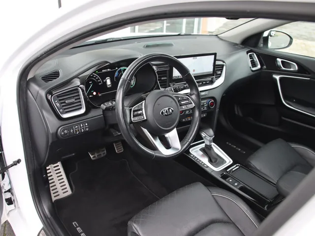 | Panoramadak | Stoelventilatie | stoelverwarming | Digitaal dashboard | Memory | Lederenbekleding | 17inch velgen | all-seasonbanden. Kia Ceed Sportswagon 1.6 GDI 140PK PHEV ExecutiveLine | Full options. Kenteken: JKK-59-L; Merk: Kia; Model: Ceed Sportswagon; APK tot: 25-07-2026; Tellerstand: 69112 KM; Carrosserievorm: Station; Aantal deuren: 5; Brandstofsoort: Hybride (Elektrisch/Benzine); Accucapaciteit: 9 kWh; Bouwjaar: 2021; Transmissie: Automaat 6; Kleur: wit Metallic; Kleurnaam: Deluxe White HW2; Bekleding: Leder; Kleur interieur: zwart; Motorinhoud: 1580 cc; Aantal cilinders: 4; Vermogen: 103 kW / 140pk; Ledig gewicht: 1514 kg; Max. massa voertuig: 2030 kg; Max. trekgewicht: 1300 kg; Aantal zitplaatsen: 5; Verbruik: 1.5 l/100 km; BTW/Marge: BTW aftrekbaar, de prijs is inclusief BTW; Lengte: 461 cm; Breedte: 180 cm; Hoogte: 147 cm; Aantal sleutels: 2; Onderhoudshistorie aanwezig: Dealer onderhouden; Bandenmaat voor: 225/45/17; Bandemaat achter: 225/45/17; Wielbasis: 2650 mm. ...
