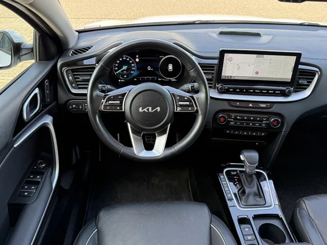 Deze prachtige Kia Ceed Sportswagon 1.6 GDI Plug-in Hybrid in de luxe ExecutiveLine-uitvoering betreft het facelift model uit 2022 en combineert comfort, efficiëntie en een bijzonder rijke uitrusting in één stijlvolle en praktische auto. Met een kilometerstand van 75.000 km en een volledig dealeronderhouden historie verkeert deze auto in uitstekende staat, waarbij de resterende fabrieksgarantie extra zekerheid biedt voor de toekomst. Wat deze uitvoering echt onderscheidt, is het uitzonderlijk hoge uitrustingsniveau dat hoort bij de ExecutiveLine. Vanaf het moment dat u instapt, ervaart u direct de luxe van de lederen bekleding en de hoogwaardige afwerking. De voorstoelen zijn niet alleen verwarmbaar, maar ook voorzien van ventilatie, wat zowel in de winter als in de zomer zorgt voor optimaal comfort. Zelfs het stuurwiel is verwarmd, wat het rijplezier op koude dagen aanzienlijk verhoogt. Dankzij keyless entry en start stapt u moeiteloos in en rijdt u direct weg zonder uw sleutel uit...