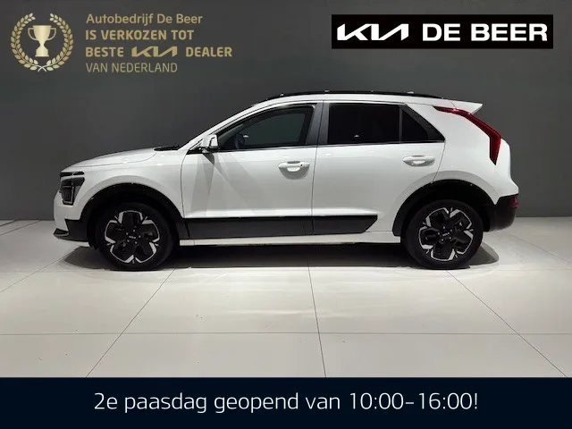 Volledig elektrische Kia Niro met 3 fase lader in de complete Air-uitvoering en onder meer uitgerust met adaptieve cruise controle, full map navigatie, parkeersensoren voor en achter in combinatie met een achteruitrijcamera, 17 Inch lichtmetalen velgen, elektrisch verstelbare bestuurdersstoel, stoel- en stuurwielverwarming, climate controle, draadloze telefoonoplader en nog tal van comfort- en veiligheid verhogende items. Constructie: 2024-07; Modeljaar: 2022; 150 kW; Gewicht: 1.657kg; Laadvermogen: 543kg; GVW: 2.200kg; Max. trekgewicht: 750kg; LxBxH: 442x183x157cm; Wielbasis: 272cm; Topsnelheid: 167km/u; Interieurkleur: Antraciet; 5 zitplaatsen; Z; Dealer onderhouden (onderhoudsboekjes aanwezig); APK bij aflevering; Fabrieksgarantie tot: 31-07-2031; Kia Certified Used, BOVAG Garantie (12 maanden); BOVAG Afleverbeurt; Wegenbelasting: € 214-€ 234p/kwrt; vanaf € 504 p/m (informeer naar de mogelijkheden en voorwaarden); GFB-44-F