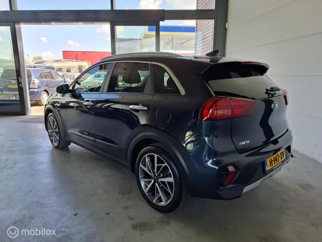 Kia Niro 1.6 GDi Hybrid DynamicPlusLine | NL BTW AUTO - RIJKLAARPRIJS. Kenteken: H-147-XV; Merk: Kia; Model: Niro; APK tot: 24-06-2026; Tellerstand: 111483 KM; Carrosserievorm: SUV; Aantal deuren: 5; Brandstofsoort: Hybride (Elektrisch/Benzine); Accucapaciteit: 2 kWh; Bouwjaar: 2020; Transmissie: Automaat; Kleur: blauw Metallic; Bekleding: Leder/Stof; Kleur interieur: zwart; Motorinhoud: 1580 cc; Aantal cilinders: 4; Motorcode: G4LE; Vermogen: 104 kW / 142pk; Ledig gewicht: 1390 kg; Max. trekgewicht: 1300 kg; Aantal zitplaatsen: 5; Verbruik: 4.3 l/100 km; BTW/Marge: BTW aftrekbaar, de prijs is inclusief BTW; Lengte: 436 cm; Breedte: 181 cm; Aantal sleutels: 2; Motorrijtuigenbelasting: € 226 - 247 per kwartaal; Fabrieksgarantie tot: 24-06-2027; Emissieklasse: Euro 6. Bijzondere opties & accessoires. Achteruitrij assistent; Achteruitrijcamera; Airco automatisch; Apple Carplay/Android Auto; Bestuurdersstoel in hoogte verstelbaar; Buitenspiegels elektrisch inklapbaar; Cruise control...
