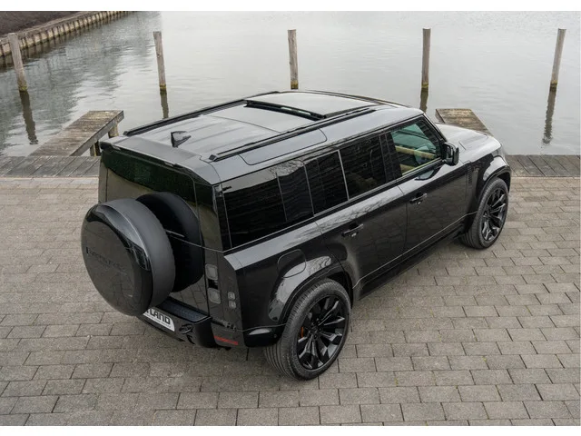 Outland – Outstanding in Land Rovers – biedt aan: Companycar Land Rover Duitsland, Defender 110 P300e in prachtig complete X-Dynamic HSE uitvoering. De Defender heeft de fabriek verlaten in de sportieve en tijdloze kleur Santorini Black Metallic, het interieur is voorzien van Windsor leder in de kleur Ebony. Een Defender in HSE-trim is standaard al behoorlijk compleet. Denk aan: Matrix LED-koplampen met signature dagrijverlichting, Glazen panoramadak met schuif-/kanteldeel vóór, Elektrisch verstelbare stuurkolom (hoogte én lengte), Meridian™ audiosysteem (400W, 10 speakers + subwoofer), Apple CarPlay® & Android Auto™, 3D Surround Camera, Keyless Entry en Adaptive Cruise Control. Deze door ons aangeboden Defender is verder voorzien van de volgende extra fabrieksopties. Land Rover Defender P300e X-Dynamic HSE. - 1AG Santorini Black Metallic. - 047CD Signature Graphic in Black (met extra opbergruimte in het interieur). - 075QD Extended Black Exterior Pack: * Bodembescherming vóór en...