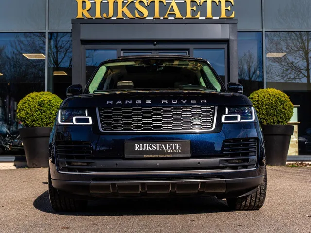 Land Rover Range Rover 2.0 P400e LWB Vogue|PANO|MEMORY|ACC. Merk: Land Rover; Model: Range Rover; APK tot: 22-07-2026; Tellerstand: 108073 KM; Carrosserievorm: SUV; Aantal deuren: 5; Brandstofsoort: Hybride (Elektrisch/Benzine); Accucapaciteit: 13 kWh; Bouwjaar: 2018; Transmissie: Automaat; Kleur: blauw Metallic; Bekleding: Leder; Kleur interieur: beige; Motorinhoud: 1997 cc; Aantal cilinders: 4; Motorcode: PT204; Vermogen: 297 kW / 405pk; Ledig gewicht: 2600 kg; Max. trekgewicht: 3500 kg; Aantal zitplaatsen: 5; Verbruik: 2.4 l/100 km; BTW/Marge: Marge, de BTW is niet aftrekbaar; Onderhoudshistorie aanwezig: Dealer onderhouden; Motorrijtuigenbelasting: € 548 - 600 per kwartaal; Emissieklasse: Euro 6; Velgmaat: 22 inch. Pakket: Drive Pack. Achteruitrij assistent; Bots waarschuwing systeem; Dodehoek detectie; Verkeersbord detectie; Vermoeidheids herkenning. Pakket: Drive Pro Pack. Achteruitrij assistent; Cruise control adaptief met Stop&Go; Dodehoek detectie; Rijstrooksensor met...