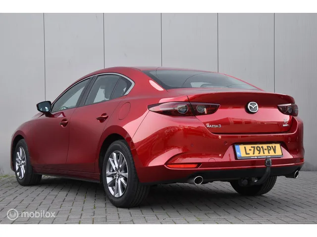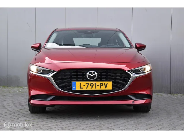 Mazda 3 2.0 e-SkyActiv-G M Hybrid 122 | Head Up | Adap Cruise |. Kenteken: L-791-PV; Merk: Mazda; Model: 3; APK tot: 21-02-2027; Tellerstand: 83909 KM; Carrosserievorm: Sedan; Aantal deuren: 4; Brandstofsoort: Benzine; Bouwjaar: 2021; Transmissie: Handgeschakeld; Kleur: rood; Motorinhoud: 1998 cc; Aantal cilinders: 4; Motorcode: PE; Vermogen: 90 kW / 123pk; Ledig gewicht: 1250 kg; Max. trekgewicht: 1300 kg; Aantal zitplaatsen: 5; Verbruik: 4.8 l/100 km; BTW/Marge: BTW aftrekbaar, de prijs is inclusief BTW; Lengte: 466 cm; Breedte: 180 cm; Hoogte: 1440 cm; Motorrijtuigenbelasting: € 172 - 188 per kwartaal; Emissieklasse: Euro 6. Bijzondere opties & accessoires. Achteruitrij assistent; Cruise control adaptief; Dodehoek detectie; Head-up display; Lichtmetalen velgen 16"; Parkeersensor achter; Trekhaak. Comfort. Boordcomputer; Regensensor. Exterieur. Buitenspiegels elektrisch inklapbaar; Buitenspiegels elektrisch verstelbaar; Buitenspiegels verwarmbaar; Centrale vergrendeling met...