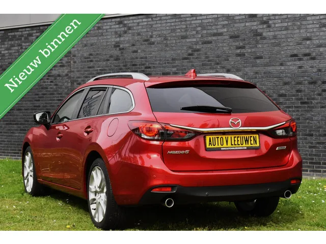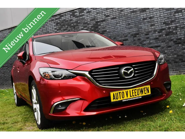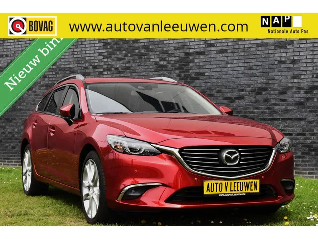 Mazda 6 Sportbreak 2.0 Nakama Bosé NAVI/DODEHOEK DET./NAVI/ETC.! Merk: Mazda; Model: 6 Sportbreak; APK tot: 22-08-2026; Tellerstand: 119855 KM; Carrosserievorm: Station; Aantal deuren: 5; Brandstofsoort: Benzine; Bouwjaar: 2017; Transmissie: Automaat; Kleur: rood Metallic; Motorinhoud: 1998 cc; Aantal cilinders: 4; Motorcode: PE; Vermogen: 121 kW / 165pk; Ledig gewicht: 1423 kg; Max. trekgewicht: 1500 kg; Aantal zitplaatsen: 5; Verbruik: 6 l/100 km; BTW/Marge: Marge, de BTW is niet aftrekbaar; Breedte: 184 cm; Motorrijtuigenbelasting: € 226 - 247 per kwartaal; Emissieklasse: Euro 6. Comfort. Boordcomputer; Cruise control; Regensensor. Exterieur. Buitenspiegels elektrisch inklapbaar; Buitenspiegels elektrisch verstel- en verwarmbaar; Dakrails; Dimlichten automatisch; Extra getint glas achter; Keyless entry; LED achterlichten; LED dagrijverlichting; LED koplampen; Lichtmetalen velgen 19"; Parkeersensor voor en achter. Infotainment. Audio installatie premium; Bluetooth audio streaming...