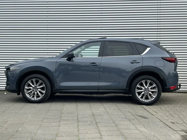 U zoekt een betrouwbare auto met uitstekende rijkwaliteiten? Dan is deze Mazda CX-5 een geweldige keuze! Hij heeft een benzinemotor en een automatische transmissie. Basisuitvoering? Niks daarvan! Deze komt met lederen interieur, een elektrisch bediende glazen panorama dak en een elektrisch bedienbare achterklep. Deze auto biedt stoelverwarming, een verwarmbare achterbank en een verwarmbaar stuur, waardoor het zelfs op de koudste dagen aangenaam rijden is. Tot de voorzieningen van deze auto behoren LED koplampen, dakspoiler, extra getint glas, in delen neerklapbare achterbank, LED-achterlichten en verstelbare lendensteunen. Het gebruik van de 360 graden camera op deze auto zorgt voor een groter gezichtsveld en helpt de dode hoeken te elimineren. Met adaptive cruise control houdt de auto zelfstandig afstand tot uw voorligger. Een veiligheidsverhogende optie waarmee u comfortabel onderweg bent. Net als een smartphone of een slimme speaker kunt u deze auto bedienen met stemcommando's....