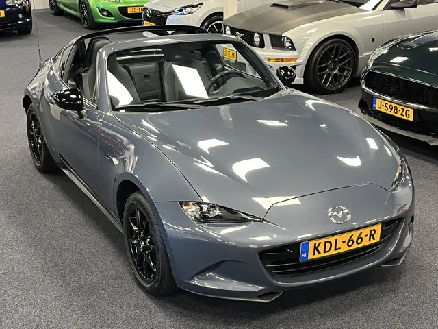 VERKOOPPRIJS IS INCLUSIEF RIJKLAARMAAKKOSTEN EN 12 MAANDEN BOVAG GARANTIE. Meer foto's zien? Bezoek ook de website van ons bedrijf op www.jsteam.nl - Wij rijden met deze auto. Bezichtiging alleen op afspraak mogelijk. Het betreft hier de extra luxe Mazda MX-5 1.5i Retractable Fastback (RF) uitvoering in de zeldzame metallic kleur Polymetal Gray met 132PK en 6 versnellingen, elektrisch bedienbaar cabriodak, navigatiesysteem, parkeersensoren en zwart lederen bekleding. Extra op deze auto: Apple CarPlay & Android Auto en luxe vloermattenset met MX-5 logo's. Historie: Deze auto is in mei 2021 nieuw in Duitsland afgeleverd en wij hebben hem nu naar Nederland gehaald. De onderhoudshistorie is aanwezig (Mazda Digitaal onderhoudsschema ter inzage). Extra uitrusting op deze luxe versie: Geïntegreerd navigatiesysteem met 7-inch LCD touchscreen kleurenscherm, DAB+: Digital Radio+ ontvanger, MP3-speler met AUX- en USB-aansluiting en 6 speakers, MZD Connect, multimedia- en...