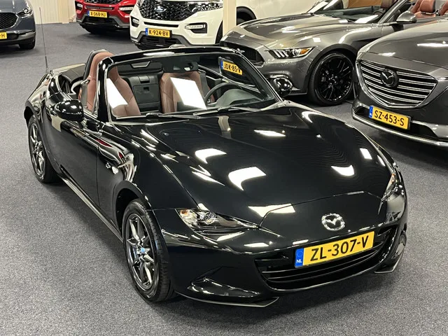 VERKOOPPRIJS IS INCLUSIEF RIJKLAARMAAKKOSTEN EN 12 MAANDEN BOVAG GARANTIE. Meer foto's zien? Bezoek ook de website van ons bedrijf op www.jsteam.nl. Het betreft hier de meest luxe 1.5i GT-M uitvoering van de MX-5 met 132PK en 6 versnellingen, bruin lederen bekleding, Bose Premium audiosysteem en een navigatiesysteem. Daarnaast is dit ook nog eens de in 2019 gefacelifte versie welke als extra nog is voorzien van een achteruitrijcamera vanaf de fabriek, meterset met 4.6inch kleurenscherm en verkeersbordherkenning. Historie: Deze auto is nieuw in Nederland geleverd en de volledige onderhoudshistorie is aanwezig (Mazda Digitaal schema ter inzage). Extra op deze auto: Apple CarPlay & Android Auto en RVS instapdorpels met MX-5 logo. EXTRA UITRUSTING OP GT-M: ■ Bose® premium-audiosysteem met 9 speakers. ■ Geïntegreerd navigatiesysteem met 7-inch LCD Touch screen kleurenscherm. ■ Achteruitrijcamera. ■ Parkeersensoren achter. ■ Adaptive High Beam Control (HBC): automatisch dimmende...