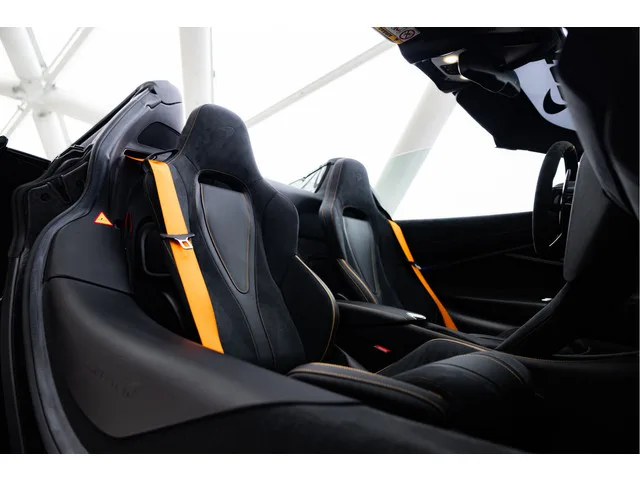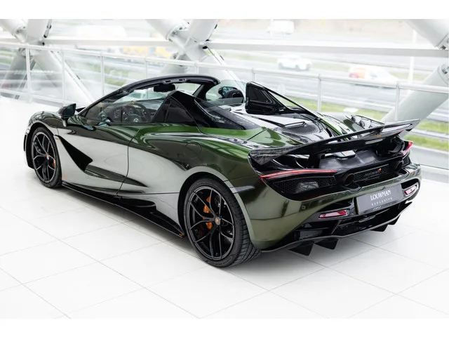 Snel, Sneller, Snelst was al een opmerking die bekend was voor de McLaren 720s Spider. Voor deze specifieke 720s gaat ook nog op dat het een uniek exemplaar is, want deze auto is aan de buitenzijde voorzien de volledige Novitec Forged Carbon Fibre Bodykit. Dit pakket bevat de volgende onderdelen in forged carbon fibre: Frontbumper, bonnet, Sideskirts, Mirrorcaps, Rear Air Intakes, Active Aero Wing en Enginebay Cover. Daarnaast is de auto volledig voorzien van een Inozitek groen metallic wrap welke er zeer strak op zit. Diverse accenten zijn in het McLaren Orange uitgevoerd zoals de logo's op de auto en de centrecaps van de velgen. Onder deze wrap zit de originele kleur: Super Nova Silver Metallic, een zilver metallic met een extreem hoog metallic flake gehalte. De auto is uitgerust met het standaard Performance carbon fiber Interior Pack 1 tevens interieur hebben we een zwart leder / alcantara combinatie afgewerkt met een McLaren Orange contractstiksel wat ook weer op de remcalipers...