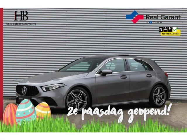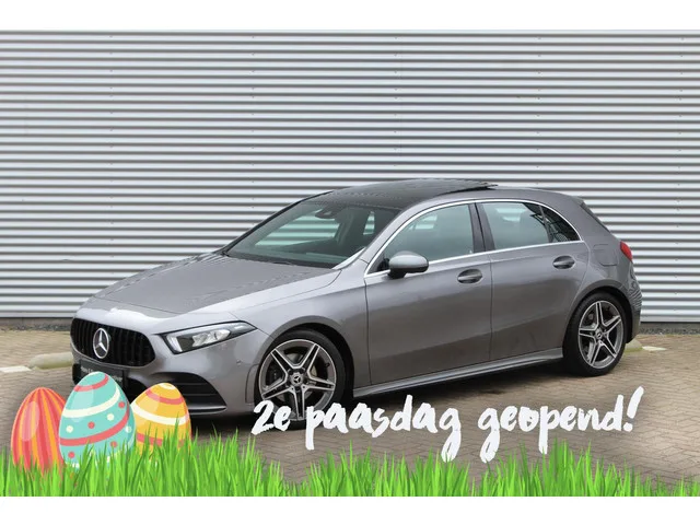 Mercedes A-klasse 200 AMG/Pano/Camera/Stoelverw. Kenteken: TK-150-P; Merk: Mercedes; Model: A-klasse; APK tot: 30-08-2026; Tellerstand: 149428 KM; Carrosserievorm: Hatchback; Aantal deuren: 5; Brandstofsoort: Benzine; Bouwjaar: 2018; Transmissie: Automaat; Kleur: grijs Metallic; Kleurnaam: Berggrijs Metallic; Bekleding: Leder/Alcantara; Kleur interieur: antraciet; Motorinhoud: 1332 cc; Aantal cilinders: 4; Motorcode: 282914; Vermogen: 120 kW / 163pk; Ledig gewicht: 1275 kg; Max. trekgewicht: 1600 kg; Aantal zitplaatsen: 5; Verbruik: 5.3 l/100 km; BTW/Marge: Marge, de BTW is niet aftrekbaar; Lengte: 444 cm; Breedte: 180 cm; Aantal sleutels: 2; Onderhoudshistorie aanwezig: Ja; Motorrijtuigenbelasting: € 190 - 207 per kwartaal; Emissieklasse: Euro 6. Comfort. Cruise control; Regensensor. Exterieur. AMG-styling; Buitenspiegel(s) automatisch dimmend; Buitenspiegels elektrisch inklapbaar; Chroom delen exterieur; Dimlichten automatisch; Elektrisch glazen panorama-dak; LED achterlichten...
