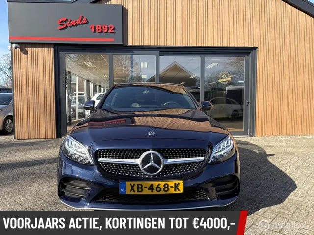 Mercedes-Benz C-klasse 180 Business Solution AMG-Line 157 PK | Facelift model | Automaat | Digitale tellers | 360 camera | DEALER-STAAT |. Kenteken: XB-468-K; Merk: Mercedes-Benz; Model: C-klasse; APK tot: 29-11-2026; Tellerstand: 98422 KM; Carrosserievorm: Sedan; Aantal deuren: 4; Brandstofsoort: Benzine; Bouwjaar: 2018; Transmissie: Automaat; Kleur: blauw; Motorinhoud: 1595 cc; Aantal cilinders: 4; Motorcode: 274910; Vermogen: 115 kW / 157pk; Ledig gewicht: 1360 kg; Max. trekgewicht: 1800 kg; Aantal zitplaatsen: 5; Verbruik: 6.2 l/100 km; BTW/Marge: Marge, de BTW is niet aftrekbaar; Lengte: 476 cm; Breedte: 184 cm; Motorrijtuigenbelasting: € 226 - 247 per kwartaal; Emissieklasse: Euro 6. Comfort. Cruise control; Regensensor. Exterieur. AMG-styling; Aluminium delen exterieur; Buitenspiegel(s) automatisch dimmend; Buitenspiegels elektrisch inklapbaar; Buitenspiegels elektrisch verstel- en verwarmbaar; Buitenspiegels met verlichting; Centrale vergrendeling met afstandsbediening...