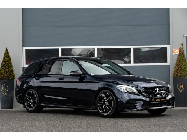 Mercedes C-klasse Estate 180 AMG|Camera|DAB|Sfeerverlichting. Merk: Mercedes; Model: C-klasse Estate; APK tot: 29-08-2027; Tellerstand: 88211 KM; Carrosserievorm: Station; Aantal deuren: 5; Brandstofsoort: Benzine; Bouwjaar: 2019; Transmissie: Automaat; Kleur: blauw Metallic; Kleurnaam: Canvasietblauw MANUFAKTUR; Bekleding: Leder; Kleur interieur: zwart; Motorinhoud: 1595 cc; Aantal cilinders: 4; Motorcode: 274910; Vermogen: 115 kW / 157pk; Ledig gewicht: 1420 kg; Max. trekgewicht: 1800 kg; Aantal zitplaatsen: 5; Verbruik: 6.5 l/100 km; BTW/Marge: Marge, de BTW is niet aftrekbaar; Lengte: 477 cm; Breedte: 184 cm; Motorrijtuigenbelasting: € 226 - 247 per kwartaal; Emissieklasse: Euro 6. Bijzondere opties & accessoires. Achteruitrijcamera; Apple Carplay/Android Auto; Bandenspanningscontrolesysteem; Bots herkenning en activatie; Buitenspiegel(s) automatisch dimmend; Buitenspiegels elektrisch inklapbaar; DAB; Draadloze telefoonlader; Elektrisch glazen panorama-dak; Extra getint glas...