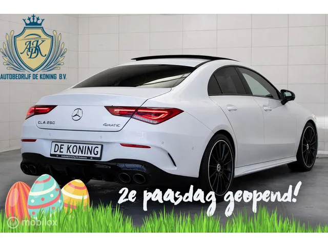 Mercedes CLA 250 AMG I 4MATIC I PANO HUP 360 Sfeer e-stoelen. Kenteken: JJT-03-F; Merk: Mercedes; Model: CLA-klasse; APK tot: 07-04-2027; Tellerstand: 76498 KM; Carrosserievorm: Sedan; Aantal deuren: 4; Brandstofsoort: Benzine; Bouwjaar: 2019; Transmissie: Automaat; Kleur: wit; Bekleding: Leder; Motorinhoud: 1991 cc; Aantal cilinders: 4; Motorcode: 260920; Vermogen: 165 kW / 225pk; Ledig gewicht: 1450 kg; Max. trekgewicht: 1800 kg; Aantal zitplaatsen: 5; Verbruik: 6.8 l/100 km; BTW/Marge: Marge, de BTW is niet aftrekbaar; Aantal sleutels: 2; Onderhoudshistorie aanwezig: Dealer onderhouden; Motorrijtuigenbelasting: € 226 - 247 per kwartaal; Emissieklasse: Euro 6; Bandenmaat voor: 225/40/19; Bandemaat achter: 225/40/19. Pakket: Rijassistentiepakket. Bots herkenning en activatie; Cruise control adaptief met Stop&Go en stuurhulp; Dodehoekdetectie met correctie; Uitwijk assistent. Pakket: AMG Line. AMG-styling; Achterbank in delen neerklapbaar; Aluminium interieur afwerking; Electronic...