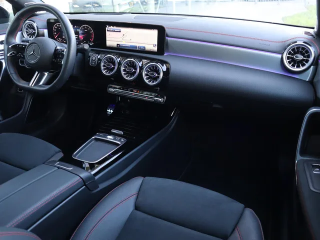 alcantara interieurdelen, Automatische klimaatregeling THERMOTRONIC met 2 zone, Lederlook ARTICO/microvezel MICROCUT Zwart met rode siernaden, Verwarmde stoelen vooraan, achteruitrijcamera, Armsteun achter, neerklapbaar/uitneembaar, Chromen schakelpaddles aan stuurwiel, Dakbekleding in stof zwart, elektrische ramen achter, elektrische ramen voor, Elektrisch verstelbare voorstoelen met geheugenfunctie, keyless start, Mercedes-AMG interieur, Multifunctioneel sportstuurwiel in nappa leder, Multifunctioneel sportstuurwiel in nappa leder, onderaan afgevlakt en chromen afwerking, Neerklapbare achterbank (40/20/60), Opklapbare armsteun in de middenconsole voor bestuurder en voorpassagier, Sfeerverlichting in 64 kleuren, Sierelementen in licht aluminium, Sportstoelen, stuurwiel multifunctioneel, Variable stuurbekrachtiging, Viervoudig verstelbare lendensteun voor stoelen vooraan