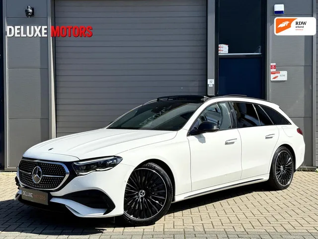 Mercedes E-klasse Estate 300 e AMG Line |Memory|Burmester|Camera|Pano|Multi screen. - Dealer onderhouden. - Mercedes-Benz garantie. Mercedes E-klasse Estate 300 e AMG dealer garantie|Pano|Burm. Merk: Mercedes; Model: E-klasse Estate; APK tot: 02-05-2028; Tellerstand: 39432 KM; Carrosserievorm: Station; Aantal deuren: 5; Brandstofsoort: Hybride (Elektrisch/Benzine); Accucapaciteit: 25 kWh; Bouwjaar: 2024; Transmissie: Automaat; Kleur: wit; Bekleding: Leder/Alcantara; Motorinhoud: 1999 cc; Aantal cilinders: 4; Motorcode: 254920; Vermogen: 230 kW / 313pk; Ledig gewicht: 2175 kg; Max. trekgewicht: 2100 kg; Aantal zitplaatsen: 5; Verbruik: 2.2 l/100 km; BTW/Marge: Marge, de BTW is niet aftrekbaar; Lengte: 497 cm; Breedte: 190 cm; Aantal sleutels: 2; Onderhoudshistorie aanwezig: Dealer onderhouden; Motorrijtuigenbelasting: € 441 - 482 per kwartaal; Emissieklasse: Euro 6; Velgmaat: 20 inch. Pakket: Comfort Plus pakket Plus. Elektrisch bedienbare achterklep met sensorsturing; Smartphone...