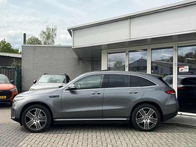 Mercedes EQC 400 4MATIC Premium Plus 80 kWh LAGE KM STAND Voorzien van oa: Schuifdak, Apple Carplay, Burmester en memory. Mercedes EQC 400 4MATIC Premium Plus 80 kWh PANO+BURMESTER. Kenteken: H-841-LV; Merk: Mercedes; Model: EQC; APK tot: 13-03-2028; Tellerstand: 29453 KM; Carrosserievorm: SUV; Aantal deuren: 5; Brandstofsoort: Elektrisch; Accucapaciteit: 80 kWh; Actieradius: 406 km; Bouwjaar: 2020; Transmissie: Automaat; Kleur: grijs; Kleurnaam: Seleniet grijs metallic; Bekleding: Leder; Kleur interieur: zwart; Interieurnaam: Black leather; Motorcode: EM0021; Vermogen: 300 kW / 409pk; Ledig gewicht: 2395 kg; Max. trekgewicht: 1800 kg; Aantal zitplaatsen: 5; BTW/Marge: Marge, de BTW is niet aftrekbaar; Lengte: 477 cm; Breedte: 192 cm; Aantal sleutels: 2; Onderhoudshistorie aanwezig: Dealer onderhouden; Motorrijtuigenbelasting: € 346 - 378 per kwartaal; Emissieklasse: Euro Z. Comfort. Cruise control; Regensensor. Exterieur. Achterruitwisser; Buitenspiegel(s) automatisch dimmend...