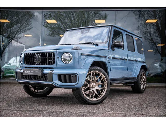 JBG-06-R. Mercedes Benz G63 AMG. Exterieur: G-Manufaktur Chinablue metallic. Interieur: Leder Nappa Manufaktur zwart (blauw stiksel). Opites: 250 AMG Drivers Package. 256 AMG Track Package. 228 Standverwarming. B28 Buitenspiegels Carbon AMG. 773 Exterieur pakket Carbon. CA0 Grille in Dark Chrome. V36 Handgrepen hemelbekleding leder. 34U Remote Services Premium. C51 Instaprails roestvrij staal verlicht. ZG6 AMG Carbon inleg dashboard. 5U8 Koplamp met donkere achtergrond. Y51 Laadrandbescherming roestvrij staal. RP5 Lichtmetalen velgen 22" AMG kruisspaken Techgoud. CS1 Mercedes ter voor en acvhter zwart. 7U8 MB logo in zwart. PK2 Multicontourstoel-pakket Actief Plus. 534 Multimediasysteem Connect 20 Premium. F05 Onderrijbeveiliging Carbon. T81 Opstapplaten aan de zijkant zwart. PT3 Performance Package AMG. BS5 Remzadels gespoten. RC1 Reservewielafdekking Carbon. 553 Rijassistentiesysteem aanhanger rangeerassistent (Trailer Assist). A22 AMG Active Ride Control Sport Chassis. L6H...
