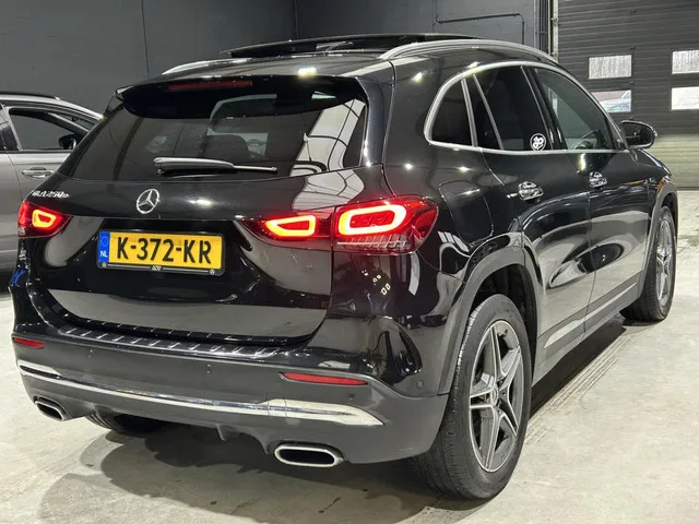 Mercedes GLA-klasse 250 e Business Solution AMG Limited PANO DAK I SFEER VERLICHTING I ORG.NL + NAP + DEALER O.H. | SOH 93%. Algemene gegevens. Kenteken: K-372-KR. Tellerstand: 187793 KM. Carrosserievorm: SUV. Aantal deuren: 5. Brandstofsoort: Hybride (Elektrisch/Benzine). Bouwjaar: 2021. Transmissie: Automaat. Kleur: Zwart Metallic. Interieur: Zwart. Bekleding: Leder/Alcantara. Onderhoudshistorie aanwezig: Dealer onderhouden. Technische gegevens. Motorinhoud: 1332 cc. Aantal cilinders: 4. Vermogen: 118 kW / 161pk. Koppel: 230Nm. Ledig gewicht: 1675 kg. Max. trekgewicht: 1800 kg. Energielabel: A. Emissieklasse: Euro 6. Acceleratie (0-100 km/h): 7.1 seconden. Topsnelheid: 220 km/h. Gemiddeld verbruik (gecombineerd): 1.4 l/100km. Functionaliteit. Lengte (cm): 444 cm. Breedte (cm): 185 cm. Financiële gegevens. Motorrijtuigenbelasting: € 307 - 335 per kwartaal. Oorspronkelijke cataloguswaarde: € 55124 (incl. 21% BTW, incl. BPM). BTW/Marge: BTW aftrekbaar, de prijs is inclusief BTW. ...