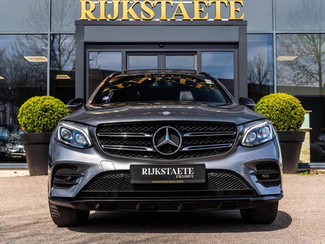 Mercedes GLC-klasse 350e 4MATIC Premium AMG|PANO|STOELVERW. Merk: Mercedes; Model: GLC-klasse; APK tot: 18-03-2027; Tellerstand: 169265 KM; Carrosserievorm: SUV; Aantal deuren: 5; Brandstofsoort: Hybride (Elektrisch/Benzine); Accucapaciteit: 6 kWh; Bouwjaar: 2017; Transmissie: Automaat; Kleur: grijs Metallic; Bekleding: Leder; Kleur interieur: zwart; Motorinhoud: 1991 cc; Aantal cilinders: 4; Motorcode: 274920; Vermogen: 235 kW / 320pk; Ledig gewicht: 1925 kg; Max. trekgewicht: 2000 kg; Aantal zitplaatsen: 5; Verbruik: 2.5 l/100 km; BTW/Marge: Marge, de BTW is niet aftrekbaar; Onderhoudshistorie aanwezig: Dealer onderhouden; Motorrijtuigenbelasting: € 360 - 394 per kwartaal; Emissieklasse: Euro 6; Velgmaat: 20 inch. Pakket: AMG Line Exterieur. AMG-styling; Chroom delen exterieur. Pakket: AMG Line Interieur. Aluminium interieur afwerking; Kunstlederen/stof bekleding; Lederen/stof bekleding; Sportstuur. Pakket: Keyless Go pakket. Elektrisch bedienbare achterklep met sensorsturing...