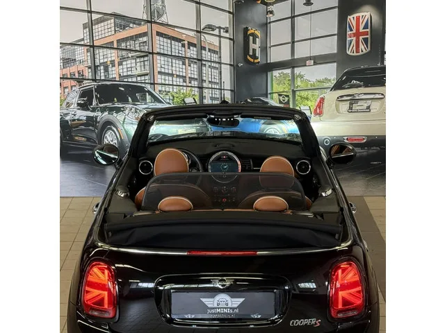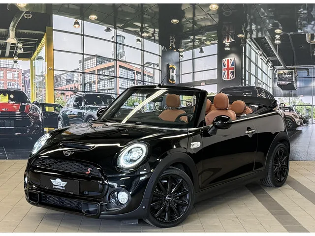 Zeer stoere en luxe uitgevoerde MINI COOPER S CABRIO 2.0 automaat 192 pk uit oktober 2018 van 1e eigenaresse. Dit betreft het facelift model, uitgevoerd in MIDNIGHT BLACK METALLIC metallic met een CHESTER malt-brown leder sport interieur. De MINI COOPER S CABRIO automaat verkeert in uitstekende staat. Extra fabrieksopties onder andere: 0249    Multifunctie v stuurwiel. 02F2    MINI LM-velg Cosmos Spoke zwart 17 INCH. 02VB    Bandenspanningsweergave. 0302    Alarmsysteem. 0345    Chrome Line Interieur. 0387    Windscherm. 0423    Vloermat velours. 0430    Binnen-/buitenspiegel, aut. dimmend. 0450    Hoogteverstelling bijrijdersstoel. 0473    Armsteun voor. 0493    Opbergpakket. 04BD    Interieuroppervlak Piano Black. 04NE    Blow-By verwarmer. 04VA    MINI Driving Modes. 0521    Regen en lichtsensor. 0544    Snelheidsregeling met remwerking. 0550    Boordcomputer. 05A1    LED Mistlamp. 05AA    Mistachterlicht. 0674    Hifi-systeem Harman Kardon. 06AM    Real-Time Traffic Information...
