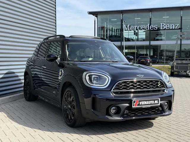 Schitterende Mini Countryman 2.0 Cooper SE ALL4 Plug in Hybrid in Enigmatic Black (diep donker blauw) metallic met hoogglans zwarte licht metalen velgen. Deze Mini is bijzonder compleet uitgerust met onder andere de volgende opties: Panorama dak, lederen bekleding, elektrische bedienbare voorstoelen met memory, Harman Kardon Audio, LED interieur sfeer verlichtingspakket, Apple Carplay, achteruitrijcamera, navigatie, virtuele cockpit, Head Up display, adaptieve cruise control, keyless entry, parkeersensoren voor + achter met parkeer assistent, etc.. De vierwiel aangedreven auto heeft een plugin-hybride aandrijflijn met een elektromotor en een benzinemotor en levert een maximum vermogen van 220 pk. Dit betreft dus de vernieuwde accu (9.6 kWh) van Mini met een hogere actieradius. De Countryman is door ons aangekocht in Frankrijk bij de BMW/Mini dealer met de complete historie aanwezig. De Kilometerstand is 100% aantoonbaar. Volledige MINI dealer onderhoudshistorie aanwezig. Uitgevoerd...