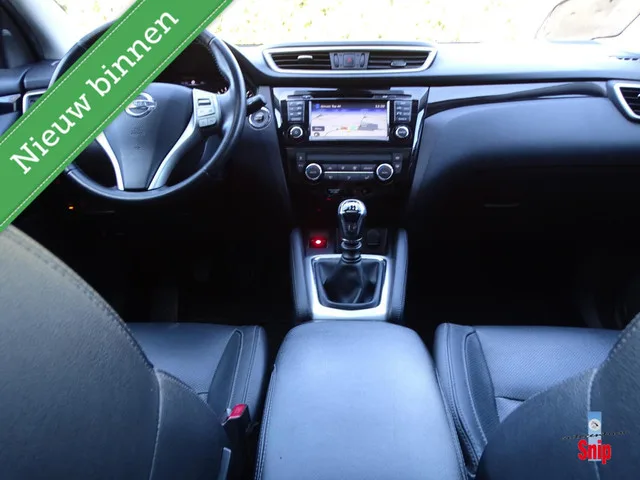 Nissan Qashqai 1.2 Tekna. Kenteken: 5-TZV-90; Merk: Nissan; Model: Qashqai; APK tot: 20-02-2027; Tellerstand: 124551 KM; Carrosserievorm: SUV; Aantal deuren: 5; Brandstofsoort: Benzine; Bouwjaar: 2014; Transmissie: Handgeschakeld; Kleur: wit; Motorinhoud: 1197 cc; Aantal cilinders: 4; Motorcode: HRA2; Vermogen: 85 kW / 116pk; Ledig gewicht: 1250 kg; Max. trekgewicht: 1200 kg; Aantal zitplaatsen: 5; Verbruik: 5.6 l/100 km; BTW/Marge: Marge, de BTW is niet aftrekbaar; Lengte: 438 cm; Hoogte: 1590 cm; Aantal sleutels: 2; Onderhoudshistorie aanwezig: Ja; Motorrijtuigenbelasting: € 172 - 188 per kwartaal; Emissieklasse: Euro 5. Comfort. Cruise control. Exterieur. Buitenspiegels elektrisch inklapbaar; Buitenspiegels elektrisch verstel- en verwarmbaar; Chroom delen exterieur; Dakrails; Dimlichten automatisch en regensensor; Extra getint glas achter; Keyless entry; LED dagrijverlichting; LED koplampen; Lichtmetalen velgen 19"; Mistlampen voor; Panoramadak; Parkeer assistent; Parkeersensor...