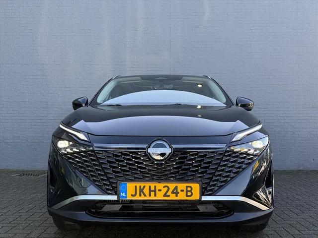 2x USB laadpoorten achter (1x type A, 1x type C), 2x USB laadpoorten voor, 3-punts veiligheidsgordels voor en achter, 9" NissanConnect Navigatie- en infotainmentsysteem, 12,3'' TFT digitaal instrumentenpaneel, 12V aansluitingen voor en in de bagageruimte, 19" diamant-geslepen lichtmetalen velgen, A-IVC Remote Control diensten en meldingen (3 jaar gratis), A-IVI NissanConnect Navigatiesysteem (9'' TFT touchscreen), ABS (Anti-blokkeersysteem), Achterbankleuning in delen neerklapbaar (60/40), Achteruitrijcamera met dynamische afstandsmarkering, Adaptive Front Lighting System (AFS), Alarmsysteem, Apple Carplay® & Android Auto® met kabel, Around View Monitor (AVM), Automatisch dimmende binnenspiegel, Automatische achterklep met voetsensor, Automatisch in- / uitschakelende koplampen, Auto Speed Control Device (ASCD), Auto Speed Limit (ASL), Back-up Collission intervention (BCI), Bandenreparatieset, Bandenspanningscontrolesysteem (TPMS), Bekerhouder achter (2x), Bekerhouder voor (2x), Blind Junction View (BJV), Blind Spot Warning & Intervention (BSW + BSI), Bluetooth® (telefoon en audio), Breakdown call, Buitenspiegelbehuizing en deurgrepen in carrosseriekleur, Buitenspiegels elektrisch inklapbaar, Buitenspiegels elektrisch verstelbaar en verwarmbaar, Centrale deurvergrendeling met afstandsbediening, Chromen raamomlijsting, Chromen sierstrip achterbumper, Chromen strip achterklep, Cross Traffic Alert (CTA), Dakrails, Dakspoiler achter, Dashboard en deurpanelen leder (blauw), Digitale radio-ontvangst (DAB+), Draadloos Apple Carplay®, Draadloze smartphone oplader (15w), DRIVE ASSIST, Drive modus functie (3 modi), Driver Attention Alert (DAA), EBD (Elektronische Remkrachtverdeler), eCall, Elektrische lendensteunverstelling voorstoelen (4-way), Elektronische handrem, Elektronische stuurbekrachtiging, Emergency Stop Signal (Autohazard), ESP (Electronic Stability Program), Extra getint glas (achterste zijruiten en achterruit), Flexibele bagageruimte indeling (2 scheidingsplanken), Frontal Collision Warning (FCW), Gescheiden automatische airconditioning (2 zones), Gordelspanners en melding voor veiligheidsgordels, Haaienvin-antenne, Haken in de bagageruimte (4 op de bodem, 2 aan de zijkanten), Halflederstof, Head-up display (10.8'' projectie), High Beam Assist (HBA), Hill Start Assist (HSA), Hill Start Assist + AutoHold functie, Hoedenplank, i-Key (openen en sluiten zonder sleutel), In hoogte en diepte verstelbaar stuurwiel, Intelligent Cruise Control (ICC), Interieur ambianceverlichting uitgebreid (middenconsole en deuren), Interieurlijsten metaallook, ISOFIX-bevestigingspunten achter (2x), Lane Departure Warning & Prevention (LDW + LDP), Lane Side Support (LSS), LED achterlichten, LED achteruitrijlicht en knipperlicht achter, LED matrix koplampen met LED dagrijverlichting en geintegreerd knipperlicht, LED mistlampen voor, Lichtsensor, Limited Slip Differential (LSD), Matzilver decoratiepaneel achterbumper, metallic, Metallic lak, Middenarmsteun achter met 2 bekerhouders, Middenarmsteun vóór met opbergvak, Middenconsole en armsteunen in PVC, Moving Object Detection (MOD), Nappa volleder, gewatteerde stoelbekleding (zwart), NBAS (Nissan Brake Assist System), Panoramisch glazen dak met elektrisch bedienbare zonwering, Parkeersensoren voor- en achterzijde, Portiergrepen met ontgrendelknop (Easy Access), Predictive Forward Collision Warning (PFCW), Predictive Front Emergency Braking met voetgangers- en fietsersherkenning (P-FEB), Premium BOSE® audiosysteem met 10 luidsprekers, Acoustimass® subwoofer en Apple Carplay® & Android, ProPILOT, Regensensor, START/STOP-systeem, Stuurwielbediening, Stuurwiel en versnellingspookknop met leder bekleed, Tankdeksel zonder dop, Traffic Sign Recognition (TSR), Vehicle Dynamic Control (VDC), Verlichting aan beide kanten in de bagageruimte, Verwarmbaar stuurwiel, Verwarmbare voorruit, Verwarmbare voorstoelen, Volledig automatische ruiten voor en achter met i-Key link, Voor-, zij- en gordijnairbags (uitschakelbare passagiersairbag), Wi-Fi hotspot (betaalde dienst), Zachte kniesteun (PVC), Zonnebrillenhouder in hemelbekleding, Zonnekleppen met make-up spiegel, Zonnekleppen met make-up spiegel, verlicht