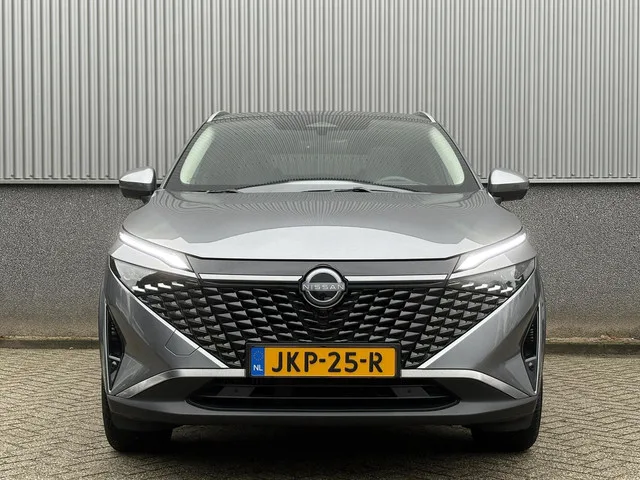 2x USB laadpoorten achter (1x type A, 1x type C), 2x USB laadpoorten voor, 3-punts veiligheidsgordels voor en achter, 9" NissanConnect Navigatie- en infotainmentsysteem, 12,3'' TFT digitaal instrumentenpaneel, 12V aansluitingen voor en in de bagageruimte, 18" Diamant-Cut lichtmetalen velgen, A-IVC Navigatie services, A-IVC Remote Control diensten en meldingen (3 jaar gratis), A-IVI NissanConnect Navigatiesysteem (9'' TFT touchscreen), ABS (Anti-blokkeersysteem), Achterbankleuning in delen neerklapbaar (60/40), Achteruitrijcamera met dynamische afstandsmarkering, Adaptive Front Lighting System (AFS), Airco, Alarmsysteem, Apple Carplay® & Android Auto® met kabel, Around View Monitor (AVM), Audiosysteem met Apple Carplay® & Android Auto®, USB-aansluiting, stuurwielbediening, 6 luidsprekers, Automatisch dimmende binnenspiegel, Automatisch in- / uitschakelende koplampen, Auto Speed Control Device (ASCD), Auto Speed Limit (ASL), Back-up Collission intervention (BCI), Bandenreparatieset, Bandenspanningscontrolesysteem (TPMS), Bekerhouder achter (2x), Bekerhouder voor (2x), Blind Junction View (BJV), Blind Spot Warning & Intervention (BSW + BSI), Bluetooth® (telefoon en audio), Breakdown call, Buitenspiegelbehuizing en deurgrepen in carrosseriekleur, Buitenspiegels elektrisch inklapbaar, Buitenspiegels elektrisch verstelbaar en verwarmbaar, Centrale deurvergrendeling met afstandsbediening, Chromen raamomlijsting, Chromen sierstrip achterbumper, Chromen strip achterklep, Climate control, Cross Traffic Alert (CTA), Cruise control, Dakspoiler achter, Dashboard en deurpanelen leder (zwart), Digitale radio-ontvangst (DAB+), Draadloos Apple Carplay®, Drive modus functie (3 modi), Driver Attention Alert (DAA), EBD (Elektronische Remkrachtverdeler), eCall, Elektrische lendensteunverstelling bestuurdersstoel (2-way), Elektronische handrem, Elektronische stuurbekrachtiging, Emergency Stop Signal (Autohazard), ESP (Electronic Stability Program), Extra getint glas (achterste zijruiten en achterruit), Flexibele bagageruimte indeling (2 scheidingsplanken), Frontal Collision Warning (FCW), Full LED koplampen met LED dagrijverlichting en halogeen knipperlicht, Geblindeerde ruiten achter, Gescheiden automatische airconditioning (2 zones), Gordelspanners en melding voor veiligheidsgordels, Haaienvin-antenne, Haken in de bagageruimte (4 op de bodem, 2 aan de zijkanten), Halflederstof, High Beam Assist (HBA), Hill Start Assist (HSA), Hill Start Assist + AutoHold functie, Hoedenplank, i-Key (openen en sluiten zonder sleutel), In hoogte en diepte verstelbaar stuurwiel, In hoogte verstelbare bestuurdersstoel (manueel), In hoogte verstelbare passagiersstoel, Intelligent Cruise Control (ICC), Interieur ambianceverlichting (middenconsole), Interieurlijsten metaallook, ISO-fix, ISOFIX-bevestigingspunten achter (2x), Keyless entry, Lane Departure Warning & Prevention (LDW + LDP), Lane Side Support (LSS), LED achterlichten, Lichtmetalen velgen, Lichtsensor, Limited Slip Differential (LSD), Matzilver decoratiepaneel achterbumper, metallic, Middenarmsteun achter met 2 bekerhouders, Middenarmsteun vóór met opbergvak, Middenconsole en armsteunen in PVC, Moving Object Detection (MOD), Navigatie, NBAS (Nissan Brake Assist System), Panoramisch glazen dak, Parkeercamera achter, Parkeersensoren voor & achter, Parkeersensoren voor- en achterzijde, Portiergrepen met ontgrendelknop (Easy Access), Predictive Forward Collision Warning (PFCW), Predictive Front Emergency Braking met voetgangers- en fietsersherkenning (P-FEB), ProPILOT, Regensensor, Schakelflippers achter stuurwiel, START/STOP-systeem, Stoffen stoelbekleding (zwart/grijs), Stuurwielbediening, Stuurwiel en versnellingspookknop met leder bekleed, Tankdeksel zonder dop, Traffic Sign Recognition (TSR), Vehicle Dynamic Control (VDC), Verlichting aan beide kanten in de bagageruimte, Voor-, zij- en gordijnairbags (uitschakelbare passagiersairbag), Wi-Fi hotspot (betaalde dienst), Zachte kniesteun (PVC), Zonnebrillenhouder in hemelbekleding, Zonnekleppen met make-up spiegel, Zonnekleppen met make-up spiegel, verlicht