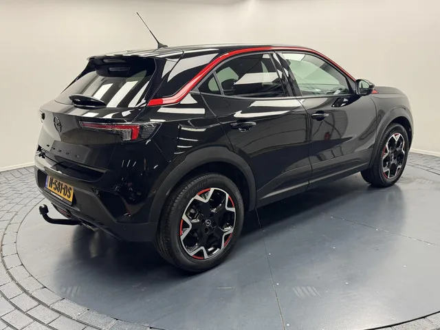 Opel Mokka 1.2i Turbo GS Line Automaat-Afn.trekhaak-Navigatie-Adapt.Cr.contr-Clima-Camera-Stoelverwarming-Parkeersensoren-Lm18''velgen. Kenteken: N-581-DS; Merk: Opel; Model: Mokka; APK tot: 16-03-2028; Tellerstand: 58630 KM; Carrosserievorm: SUV; Aantal deuren: 5; Brandstofsoort: Benzine; Bouwjaar: 2021; Transmissie: Automaat; Kleur: zwart; Bekleding: Leder/Stof; Kleur interieur: zwart; Motorinhoud: 1199 cc; Aantal cilinders: 3; Motorcode: HN05; Vermogen: 96 kW / 131pk; Ledig gewicht: 1195 kg; Max. trekgewicht: 1200 kg; Aantal zitplaatsen: 5; Verbruik: 5.9 l/100 km; BTW/Marge: Marge, de BTW is niet aftrekbaar; Lengte: 415 cm; Breedte: 179 cm; Aantal sleutels: 2; Onderhoudshistorie aanwezig: Ja; Motorrijtuigenbelasting: € 172 - 188 per kwartaal; Emissieklasse: Euro 6. Comfort. Regensensor. Exterieur. Achterruitwisser; Buitenspiegel rechts; Buitenspiegels elektrisch inklapbaar; Buitenspiegels elektrisch verstelbaar; Centrale vergrendeling met afstandsbediening; Dimlichten automatisch...