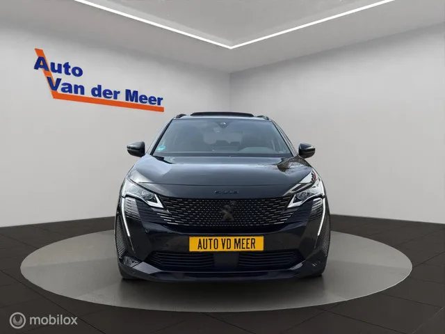 Peugeot 5008 1.2 Hybrid 136 GT / Black Pack / Panoramadak. Merk: Peugeot; Model: 5008; APK tot: 03-06-2028; Tellerstand: 35007 KM; Carrosserievorm: SUV; Aantal deuren: 5; Brandstofsoort: Hybride (Elektrisch/Benzine); Bouwjaar: 2024; Transmissie: Automaat; Kleur: zwart Metallic; Motorinhoud: 1199 cc; Aantal cilinders: 3; Vermogen: 100 kW / 136pk; Ledig gewicht: 1600 kg; Aantal zitplaatsen: 7; Verbruik: 5.8 l/100 km; BTW/Marge: BTW aftrekbaar, de prijs is inclusief BTW; Aantal sleutels: 2. Pakket: Panorama Pack. Gelaagde zijruit(en); Panoramadak. Comfort. Regensensor. Exterieur. Achterruitwisser; Achterspoiler; Andere dakkleur; Buitenspiegel rechts; Buitenspiegels elektrisch inklapbaar; Buitenspiegels elektrisch verstel- en verwarmbaar; Buitenspiegels met verlichting; Buitenspiegels verwarmbaar; Dagrijverlichting; Dakrails; Dimlichten automatisch; Extra getint glas achter; Getint glas; Glazen schuifdak; Keyless entry; Koplampen adaptief; LED achterlichten; LED dagrijverlichting...